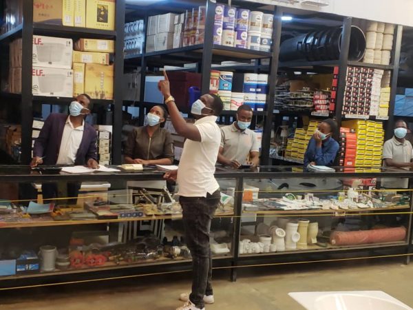 Clifford Kawinga, Creck Hardware Managing Director and Chief Executive Officer in his officeCreck Hardware workers assisting a customerA Creck Hardware worker waiting to sanitize hands of a customer (washing hands) at the entrance