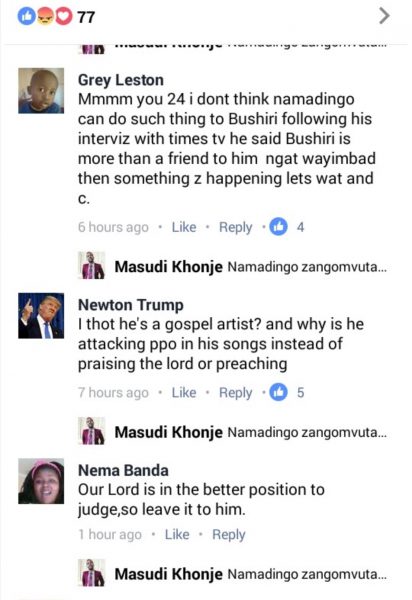 Withus Gilbert also commented: “ When the days were good, Namadingo sanga praise song for South African based flamboyant Prophet Shephered Bushiri. Now he has decided to throw subliminal jab at the man of God …”